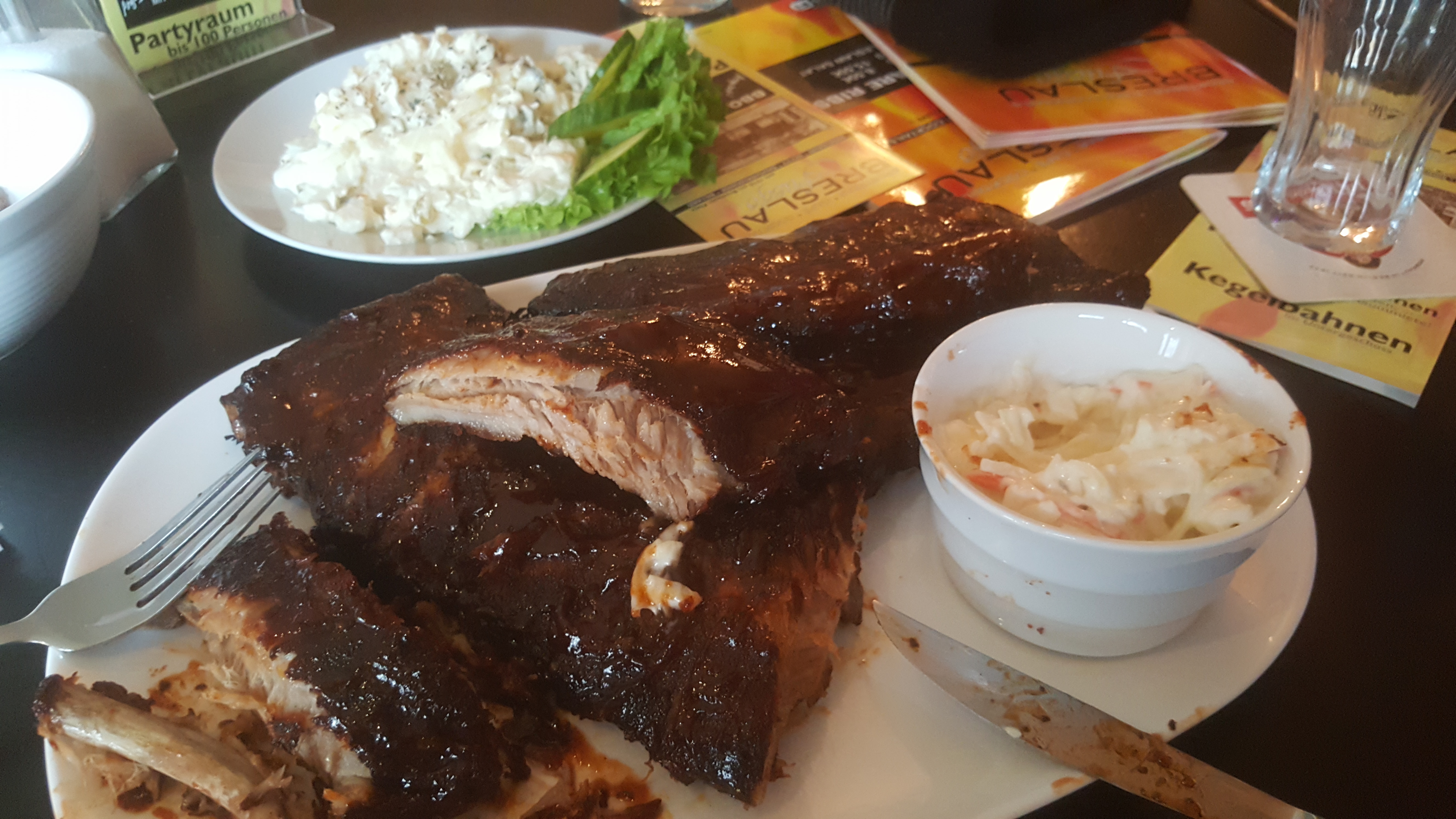 Az oldalasevés nagy misztérium. Kevés ételnél kerül az ember olyan közel a testhez, amit megeszik, mint épp az oldalas esetében. Hiába finomkodunk eleinte a késsel villával, előbb utóbb kézzel-lábbal kell nekiesni, ettől aztán még érzékibb lesz az egész. És hát a bordák szopogatásában van valami barlanglakó, ősi élvezet. Végül ott piheg az ember fülig barbecue-szószosan, mintha valami élet-halál harcon lenne túl. Nemes küzdelem lesz ez a mai amúgy, mert az előttem heverő porció 800 grammos, és még krumplisaláta is van hozzá, de mondjuk piszok éhes is vagyok. Meg ebben a nyirkos berlini januárban kell is az energia. Meg úgyis lesétálom… hazudom magamnak. Mindegy. Megeszem, és kész. Történik mindez a Breslauer Platz on, a Breslau Fuegoban.